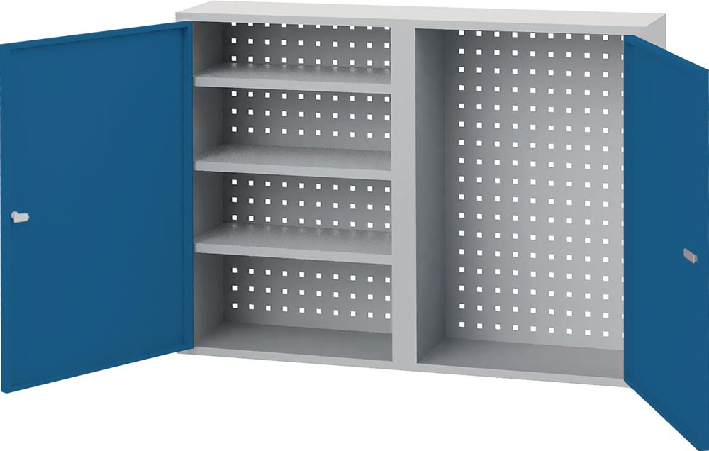 Hängeschrank H750xB1000xT200 mm Vollblechtüren lichtgrau/signalblau Stahlblech