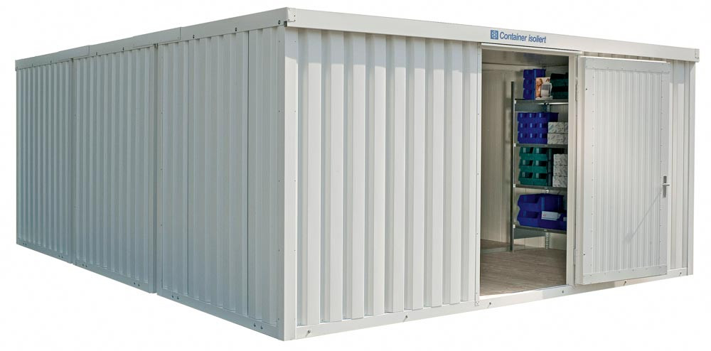 Isolierter Lagercontainer, 2 Module, montiert, mit Holzfußboden, RAL 9002 grauweiß, BxTxH 5090x4350x2420 mm EP513850