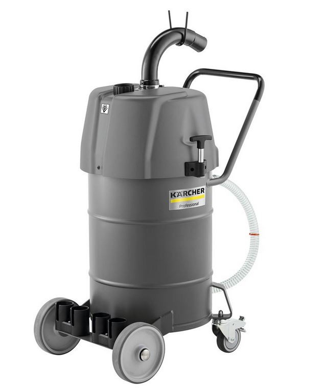 Kleinster Industrie-Nass-Trockensauger zum sortenreinen Trennen und Rückführen von flüssigem und festen Sauggut (z. B. Spänen) in der metallverarbeitenden Industrie · 360° drehbarer Sauganschluss · Optische Füllstandsanzeige · Stabiles Fahrgestell nit Bremse · Zubehöraufnahme am Fahrgestell · Leistungsaufnahme 1,2 kW (230 V) · Behältervolumen 40 l · Luftmenge 212,4 m 3 /h · Unterdruck 230 mbar
