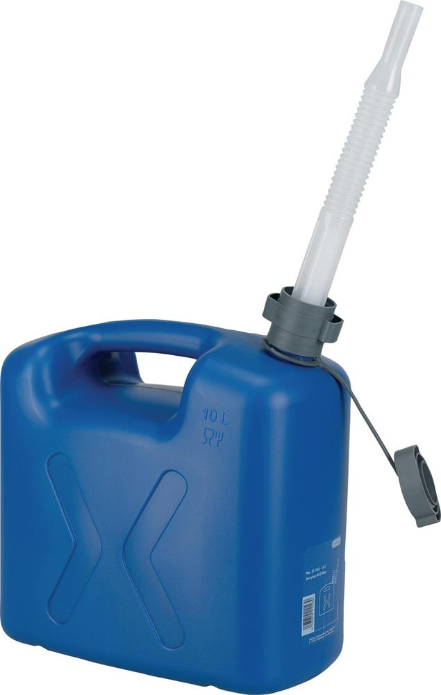 für den Einsatz von AdBlue® · aus Polyethylen hoher Dichte, robust und unempfindlich gegen Schlageinwirkung · Verschlusskappe mit Fixierband gegen Verlust gesichert · Flexibles Auslaufrohr mit integrierter Entlüftung · Auslaufrohr wird im Kanister aufbewahrt · Kraftsparende Anwendung durch Griffmulde · nicht verwendbar für Kraftstoffe · mit Sichtstreifen vorne und hinten · Leerkanister