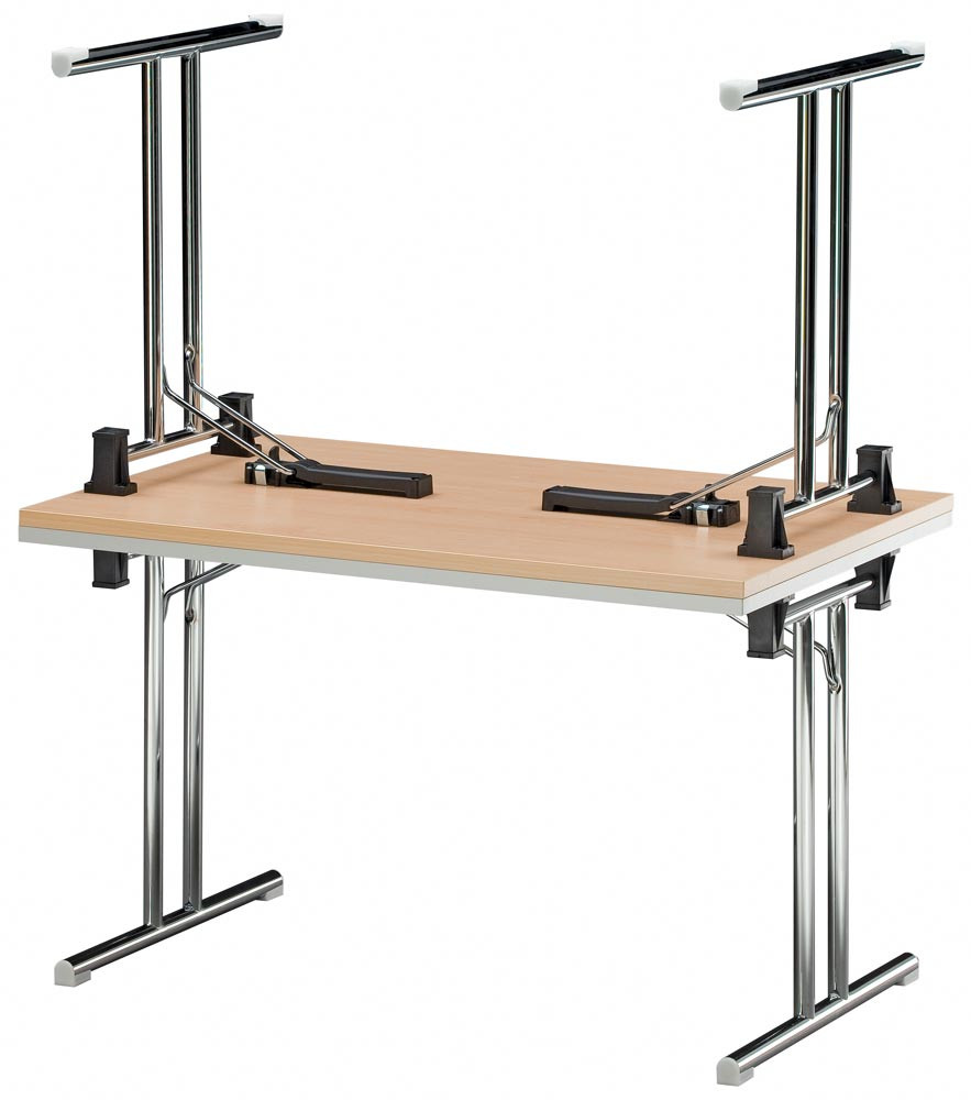 Klapptisch, BxTxH 1400x700x720 mm, T-Fuß-Gestell verchromt, gerade Kufen, melaminharzbesch. Platte buche EP559594