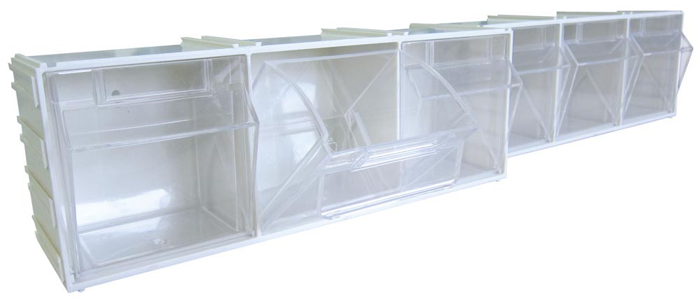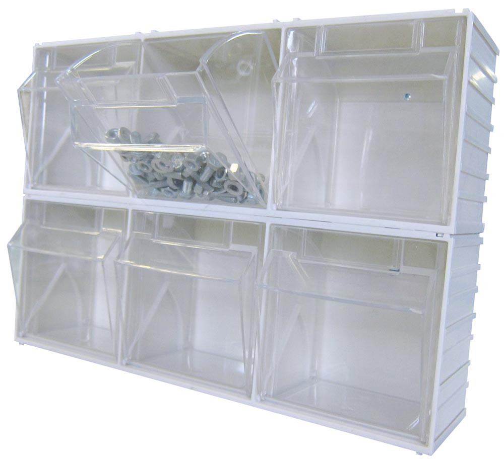 Klarsichtkästen im steckbarem Gehäuse, 3 Klarsichtkästen Größe 6, BxTxH 304x75x113 mm, Farbe weiß, VE 2 Stück