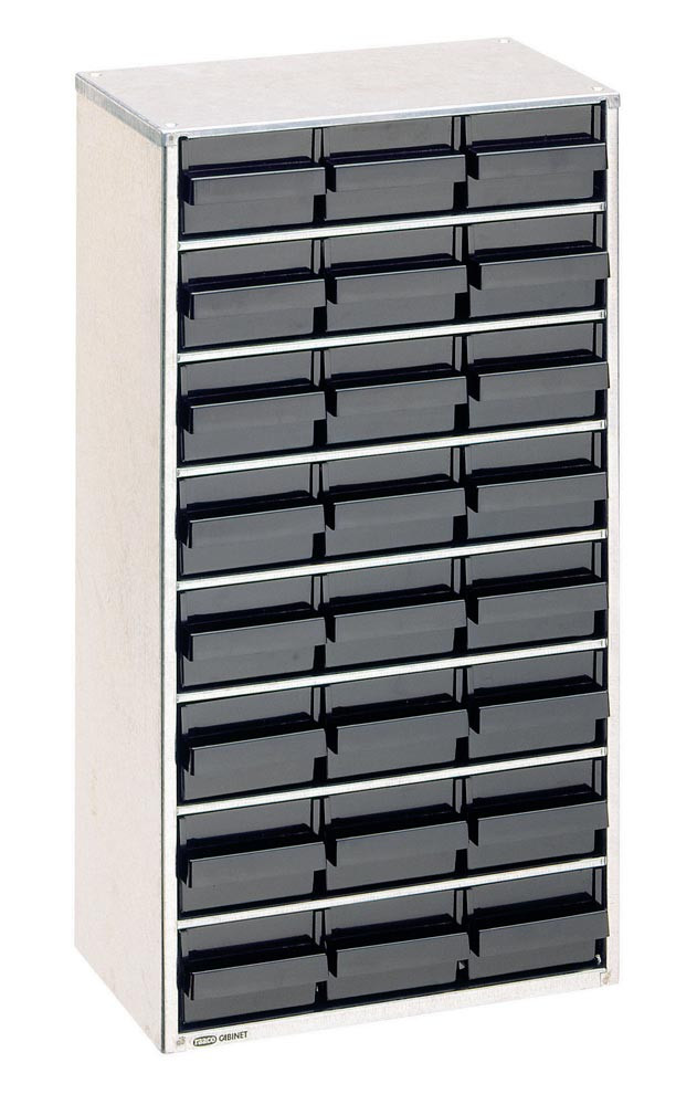 Kleinteilemagazin ESD Stahlmagazin 1224-02 B.306xT.150xH.552mm leitfähig m.24 Schubl. schwarz a.ESD-PP Rahmen galv. inkl. Erdungskabel
