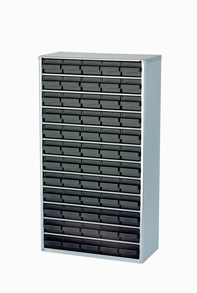 Kleinteilemagazin ESD Stahlmagazin 1260-00 B.306xT.150xH.552mm leitfähig m.60 Schubl. schwarz a.ESD-PP Rahmen galv. inkl. Erdungskabel