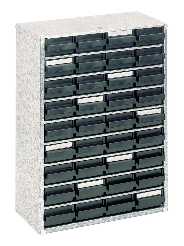 Kleinteilemagazin ESD Stahlmagazin 936-01 B.306xT.150xH.417mm leitfähig m.36 Schubl. schwarz a.ESD-PP Rahmen galv. inkl. Erdungskabel