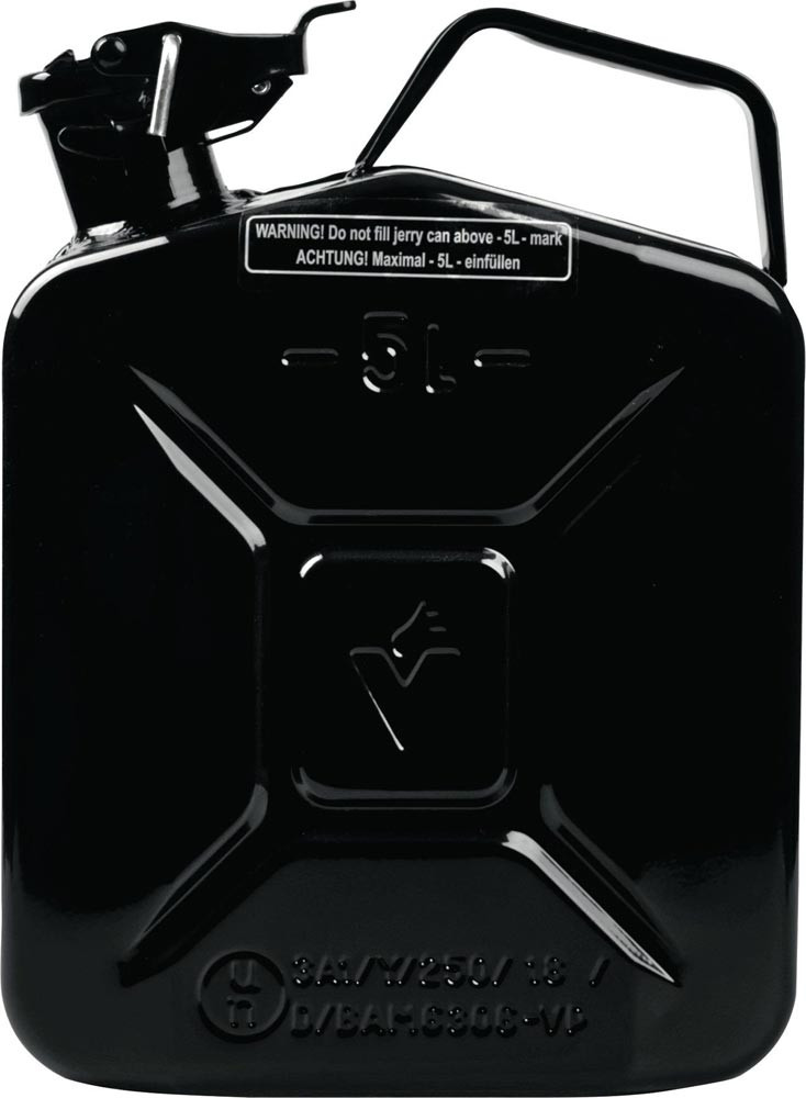 Kraftstoffkanister 5 l Schwarz RAL 9005 Stahlblech 0,9 mm L230xB120xH310mm