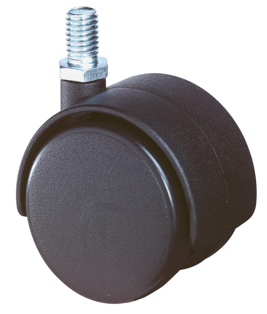 Kunststoff-Doppelrolle, schwarz, Durchm. 50 mm, Traglast 40 kg, Gewindestift, für weiche Böden, VE 8 Stück