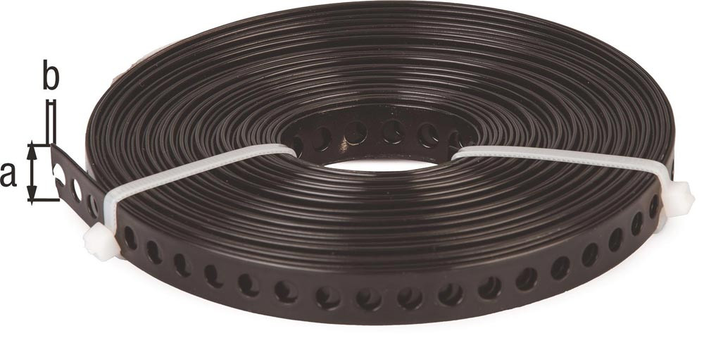Lochband Band-B12 x 0,8mm Länge 10 m verzinkt, schwarz kunststoffbeschichtet
