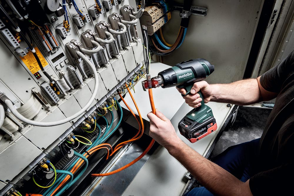Ausführung: Leichtes Akku-Heißluftgebläse für leistungsgstarke Hitze ∙ Sekundenschnelles Aufheizen in nur 5 Sekunden (300°C) ∙ Maximale Performance durch großes Luftvolumen und hohe Temperaturen ∙ Zwei Temperaturstufen, einfach umschaltbar während des Arbeitens ∙ Mit hellem LED-Licht zum Arbeiten in dunkleren Bereichen ∙ Hohe Arbeitssicherheit durch schlanken, gummierten Griffbereich und sichere Abstellmöglichkeit ∙ Passende Düsen zum Entlacken, Formen, Schrumpfen, Schweißen und vieles mehr (Zubehör)