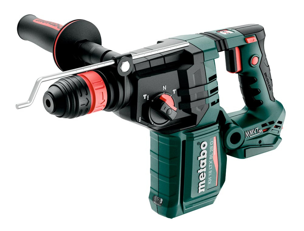 Ausführung: Kompakter Akku-Kombihammer mit Brushless-Motor zum Hammerbohren, Bohren und Meißeln ∙ Metabo Quick: schneller, werkzeugloser Bohrfutterwechsel ∙ Vario-Tacho-Constamatic (VTC)- Vollwellenelektronik zum Arbeiten mit materialgerechten Drehzahlen ∙ VibraTech (MVT): gesundheitsschonendes, ermüdungsarmes Arbeiten auch im Dauereinsatz ∙ Elektronischer Sanftanlauf für präzises Anbohren ∙ LED-Arbeitslicht ∙ SDS-plus Werkzeugaufnahme ∙ Staubfreies Bohren mit kompakter Staubabsaugung ISA 28 (Zubehör)