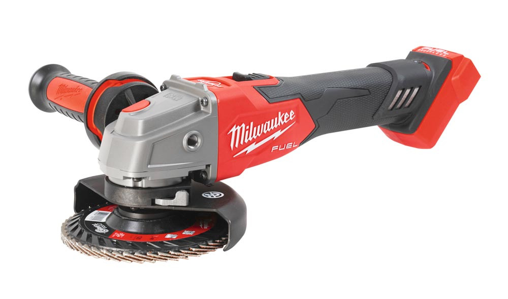 Winkelschleifer mit Drehzahlelektronik für jede Anwendung ∙ 5 Geschwindigkeitsstufen für beste Resultate mit Edelstahl und Aluminium sowie Rost- und Farbentfernung ∙ RAPIDSTOP™ für schnelles Bremsen der Scheibe in unter 2 Sekunden für hohen Anwenderschutz ∙ Anti-Vibrations-Seitenhandgriff für geringe Vibration ∙ FIXTEC™-Schnellwechselsystem zum werkzeuglosen Scheibenwechsel ∙ Schlankes Griffdesign ∙ Austauschbares Staubschutzgitter verhindert das Eindringen von Schmutz und verlängert so die Lebenszeit der Maschine ∙ 125 mm werkzeuglose Schutzhaubenverstellung ermöglicht große Schnittkapazitäten
