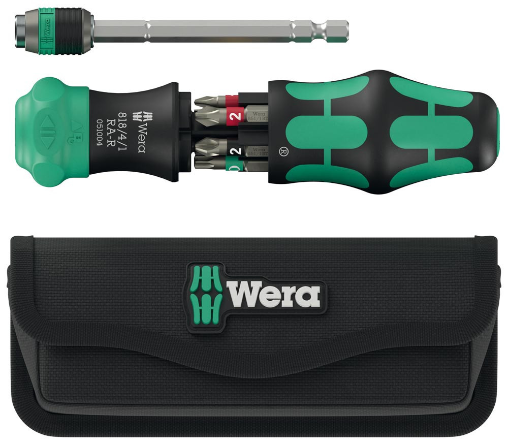Robuster Magazin-Schraubendreher mit federunterstützendem Öffnungsmechanismus per Knopfdruck und versenkbarer Teleskopklinge mit Schnellwechselfutter für 1/4" Bit-Einsätze ∙ Klinge als Maschinenadapter für Akku-Schrauber einfach herausnehmbar ∙ Ergonomischer Kraftform-Griff aus Mehrkomponenten-Material mit Abrollschutz ∙ Im Griff integrierte Ratsche mit Feinverzahnung ∙ Innovative Ratschenmechanik ermöglicht einfaches „Zwirbeln“ bei fehlendem Widerstand der Schraube ∙ Intuitives Umschalten: Schalte ich nach rechts – schraube ich nach rechts, schalte ich nach links – schraube ich nach links ∙ Integriertes Bit-Magazin mit 6x 25 mm BiTorsion Bits ∙ Farbkennzeichnung nach Profilen und Größenstempelung ∙ Innovative Rapidaptor-Technologie für schnellen Bit-Wechsel ∙ In praktischer und robuster Gürteltasche