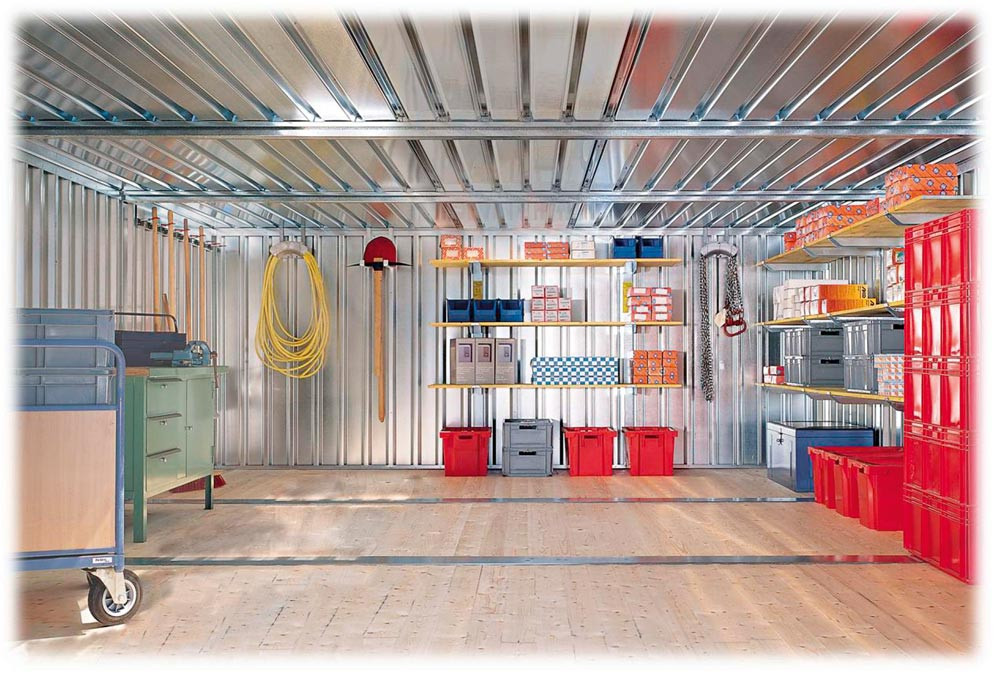 ∙ Lagerräume von 2 m2 bis 32 m2, montierbar auf ebenen Flächen ∙ Hoher Korrosionsschutz ∙ Jederzeit ortsversetzbar ∙ einsteckbare Gerätehalterungen und Regale ∙ optionales Elektroinstallationspaket für Beleuchtung ∙ Sicherungskasten bei Verwendung mehrerer Stromkreise empfohlen ∙ CE-Kennzeichnung mit Leistungserklärung für Standsicherheitsnachweis nach Eurocode 3
