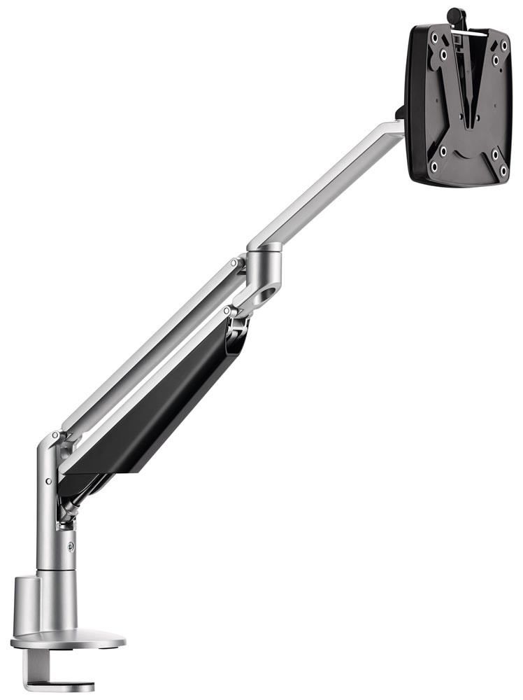 Monitortragarm, 2-teilig, Aluminium mit Gasfederunterstützung, 3-in-1 Befestigung, Aktionsradius 433 mm, TG 7 kg, silber