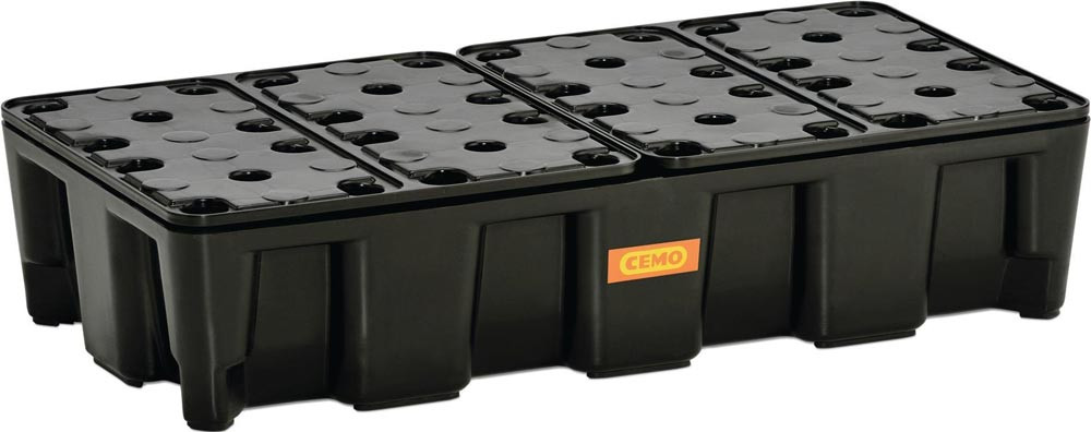 für Kleingebinde · zur sicheren und vorschriftsmäßigen Lagerung gewässergefährdenden Flüssigkeiten der GHS-Kategorien 1-4 · aus HD-Polyethylen · sehr beständig gegen Laugen, Öle und Säuren · stapelbar · rutschsichere Plattenoberfläche · konzipiert für Kombination auf Europalette · mit DIBT-Zulassung Nr. Z-40.22-548 und Z-40.22-549
