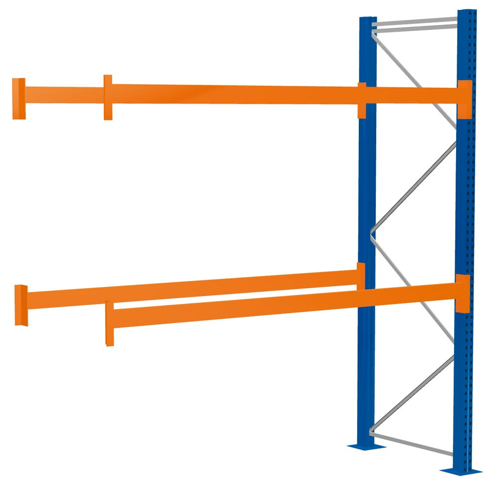 Palettenregal, Anbaufeld, BxTxH 2786x1100x3000 mm, 3 Lagerebenen, Fachlast 2400 kg, Feldlast 5395 kg, Rahmen blau, Holme reinorange