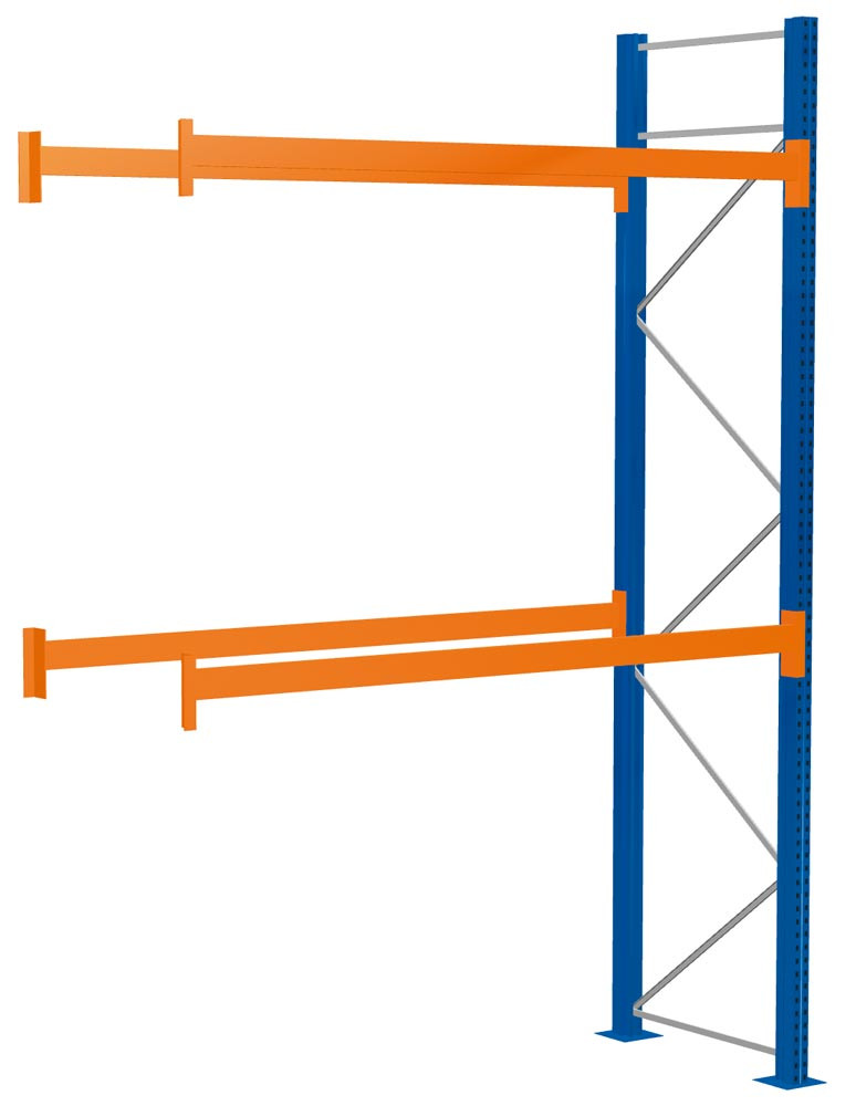 Palettenregal, Anbaufeld, BxTxH 2786x1100x4000 mm, 3 Lagerebenen, Fachlast 2400 kg, Feldlast 5287 kg, Rahmen blau, Holme reinorange