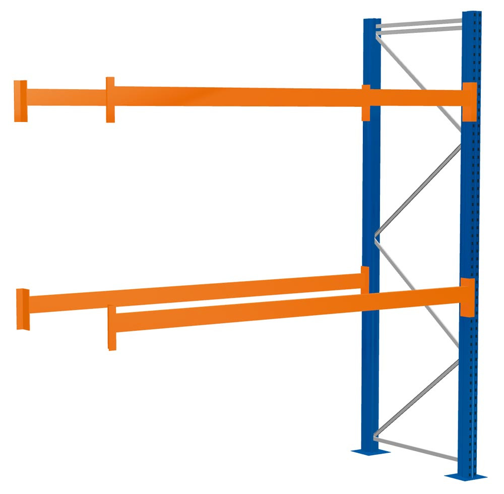 Palettenregal, Anbaufeld, BxTxH 2820x1100x3000 mm, 3 Lagerebenen, Fachlast 3000 kg, Feldlast 7070 kg, Rahmen blau, Holme reinorange