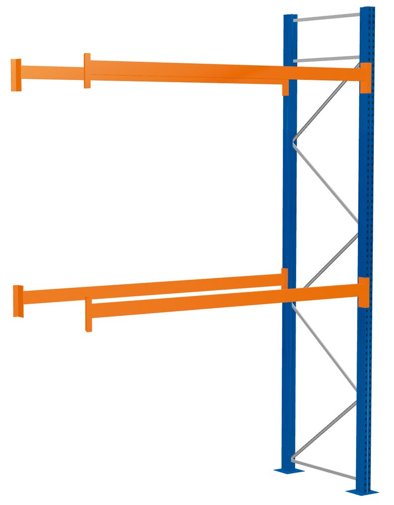 Palettenregal, Anbaufeld, BxTxH 2820x1100x4000 mm, 3 Lagerebenen, Fachlast 3250 kg, Feldlast 7115 kg, Rahmen blau, Holme reinorange