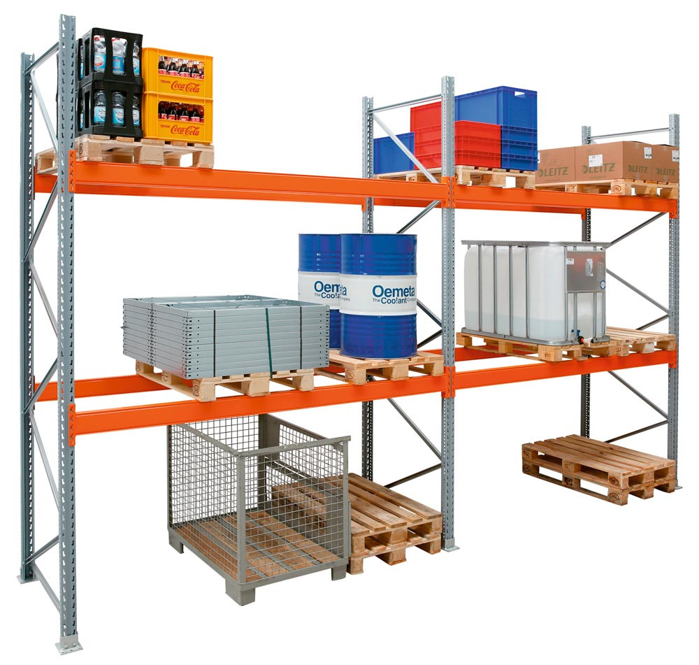 Palettenregal, Grundfeld, 2 Lagerebenen, Fachlast 3000 kg, Feldlast 6000 kg, BxTxH 1900x1100x3000 mm EP555781