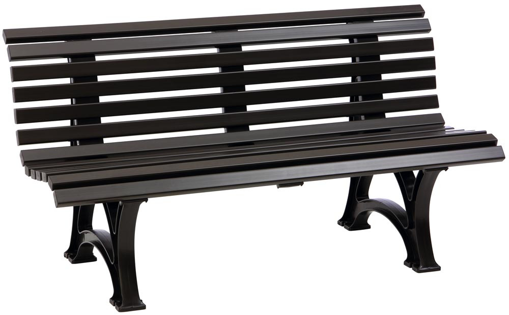 Parkbank aus Kunststoff, mit 2 Füßen, 6 Sitz- und 7 Lehnlatten 50x30 mm, Breite 1500 mm, braun