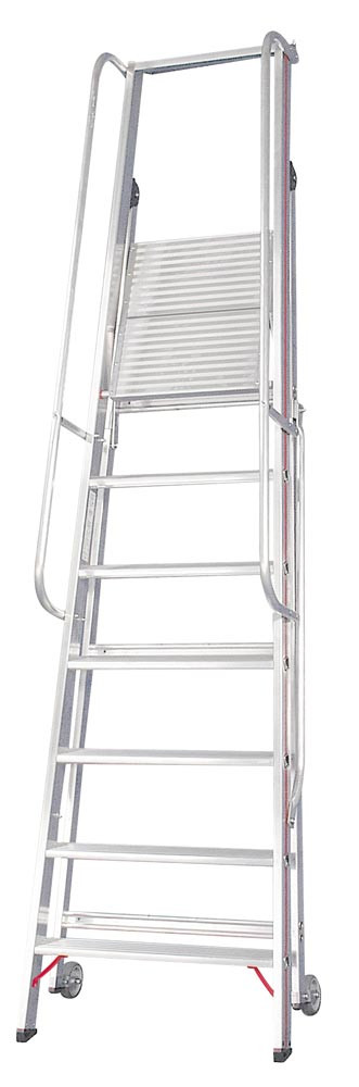 Plattformleiter R13 mit Kipprollen und langem Handlauf, 8 Stufen, Standhöhe 1,88 m, 80 mm Stufentiefe, Gewicht 17,3 kg EP562430