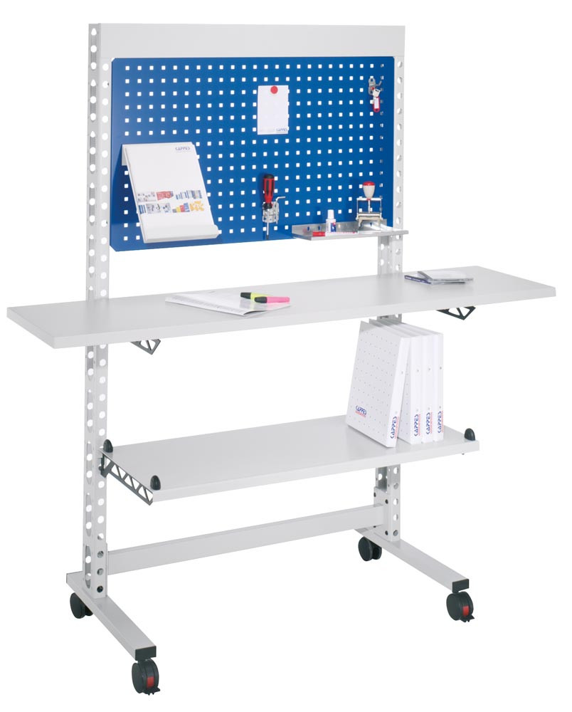 QM-Station, fahrbar, inkl. Infotafel, Metallablage, Arbeitsplatte, Infoblende, Lenkrollen, BxTxH 1600x620x1770 mm