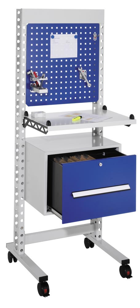 QM-Station mobil, schmal, mit Schublade für Hängemappen: