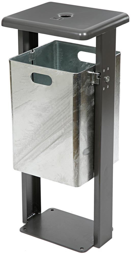 Rechteck-Abfallbehälter mit Abdeckhaube, ca. 40 L, feuerverzinkt sowie Haube und Ständer in DB 703, Bodenplatte zum Aufschrauben, Haube mit Ascher