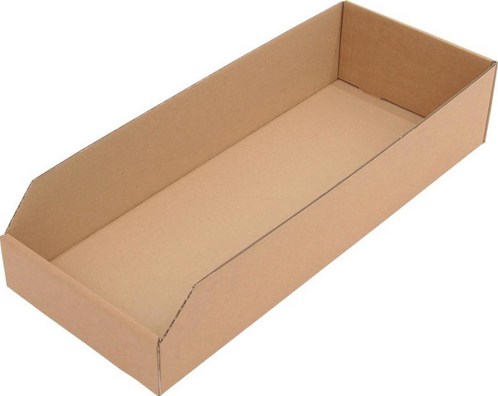 faltbar · ideal zur Lagerung von Kleinteilen · aus 1-welliger Pappe · geringe Höhe der Karton-Vorderseite von 60 mm · platzsparende Lagerung durch flache Anlieferung · schnell aufzurichten dank Steckmechanismus · recycelbar