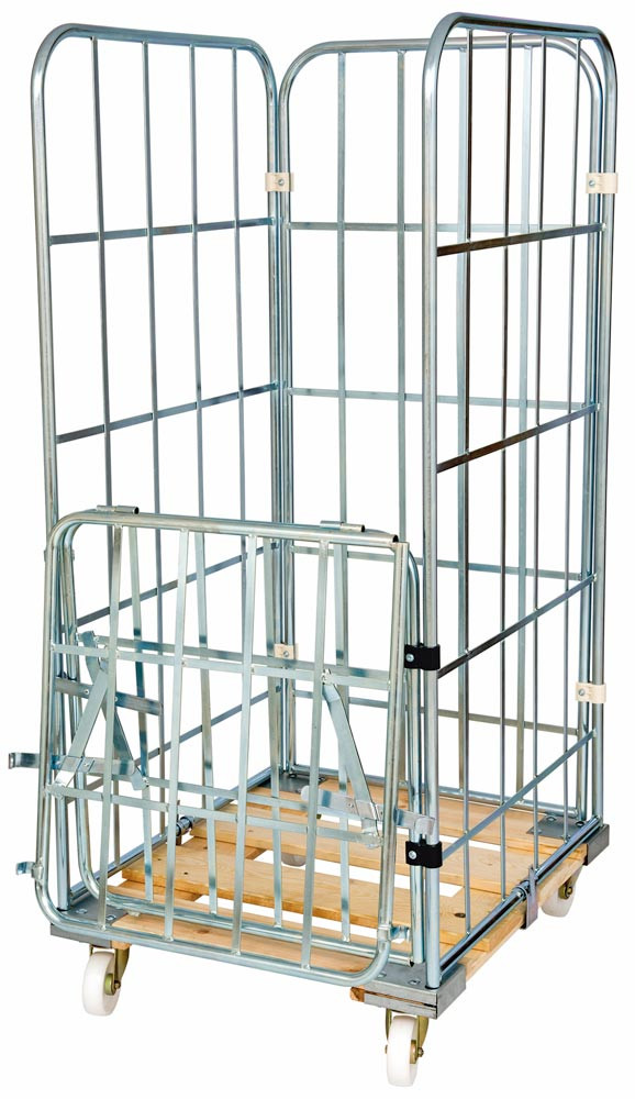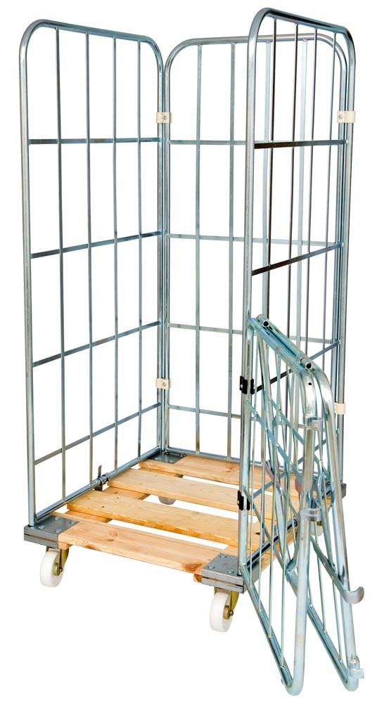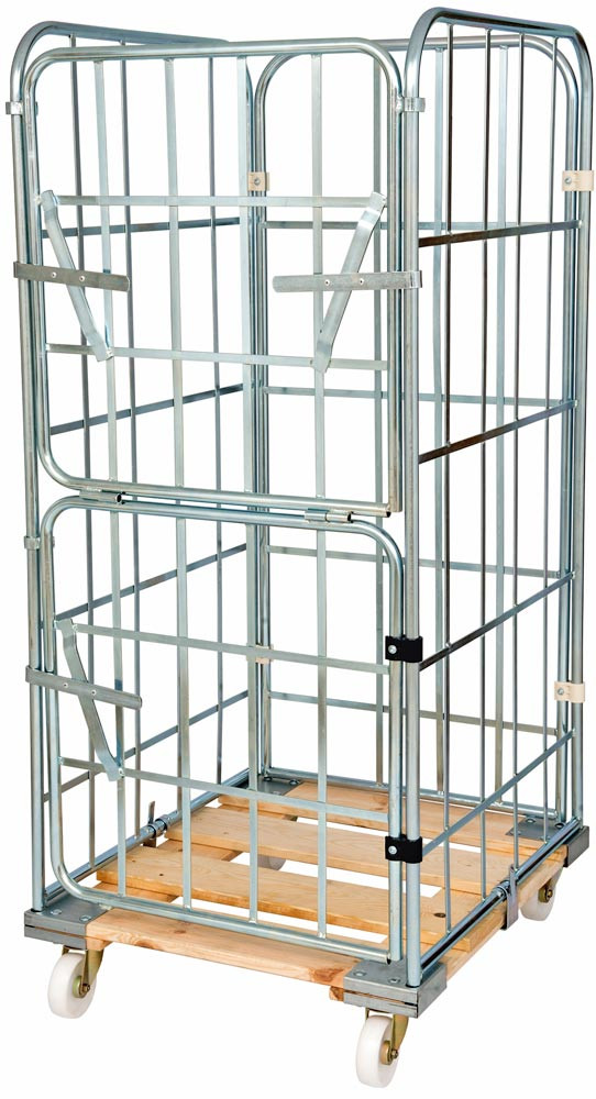 Rollbox, 4-seitig (halb abklappbare Vorderwand), Nutzhöhe 1460 mm, LxBxH 810x720x1640 mm, Bodenplatte aus Holz, natur