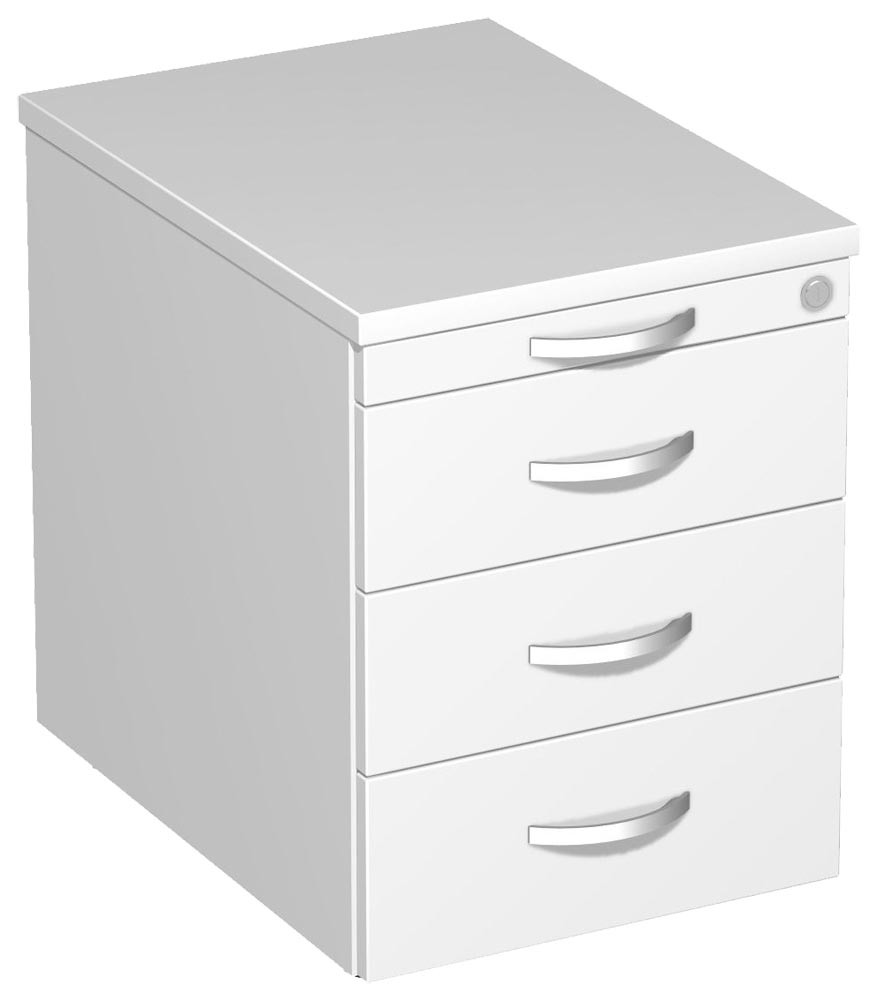 Rollcontainer, BxTxH 438x600x565 mm, 1 Utensilienschub, 3 Schubladen, Zylinderschloss, weiß
