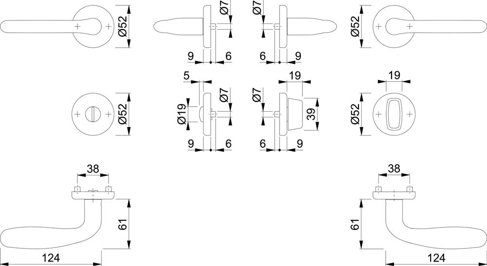 für Zimmertüren · verdeckte, durchgehende Verschraubung mit selbstschneidenden Gewindeschrauben · Kunststoff-Unterkonstruktion mit Stütznocken · mit Hochhaltefeder · Türgriff mit Profilstift-Verbindung · Vierkant 8 mm · für Türstärke 37 - 42 mm · Anschlagrichtung DIN links / rechts