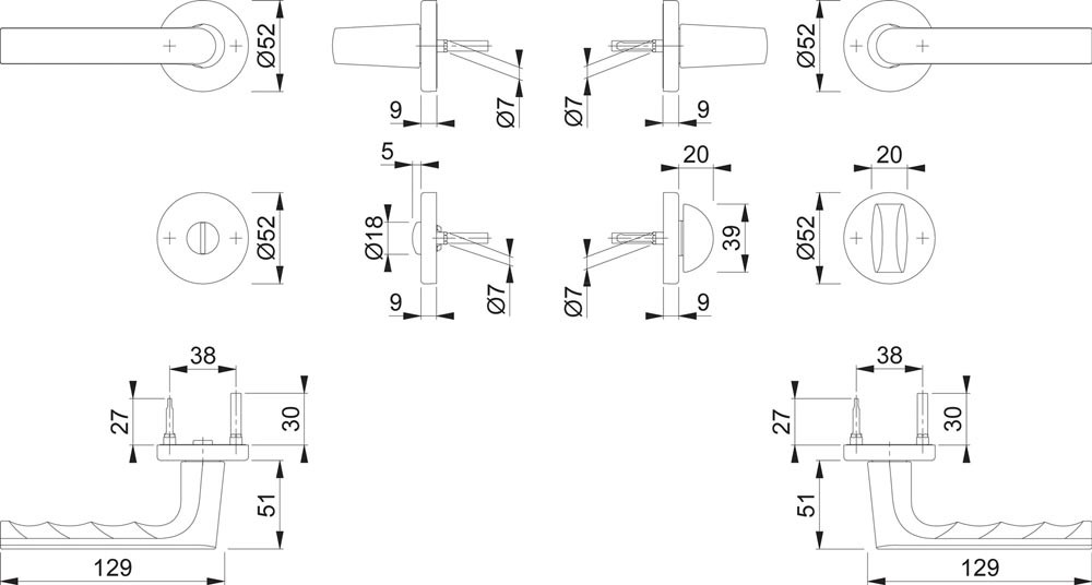 Rosettengarnitur Hamburg 1700 / 42KB/42KBS Aluminium F9714M rund SK/OL DIN links / rechts D/D