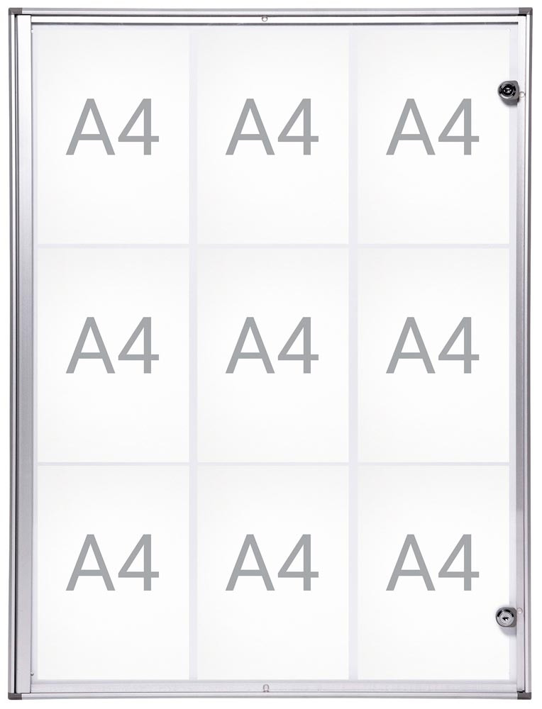 Schaukasten, BxTxH 710x31x951 mm, 9xDIN A4, Aluprofile, Kunststoffglas, 2 Zylinderschlösser