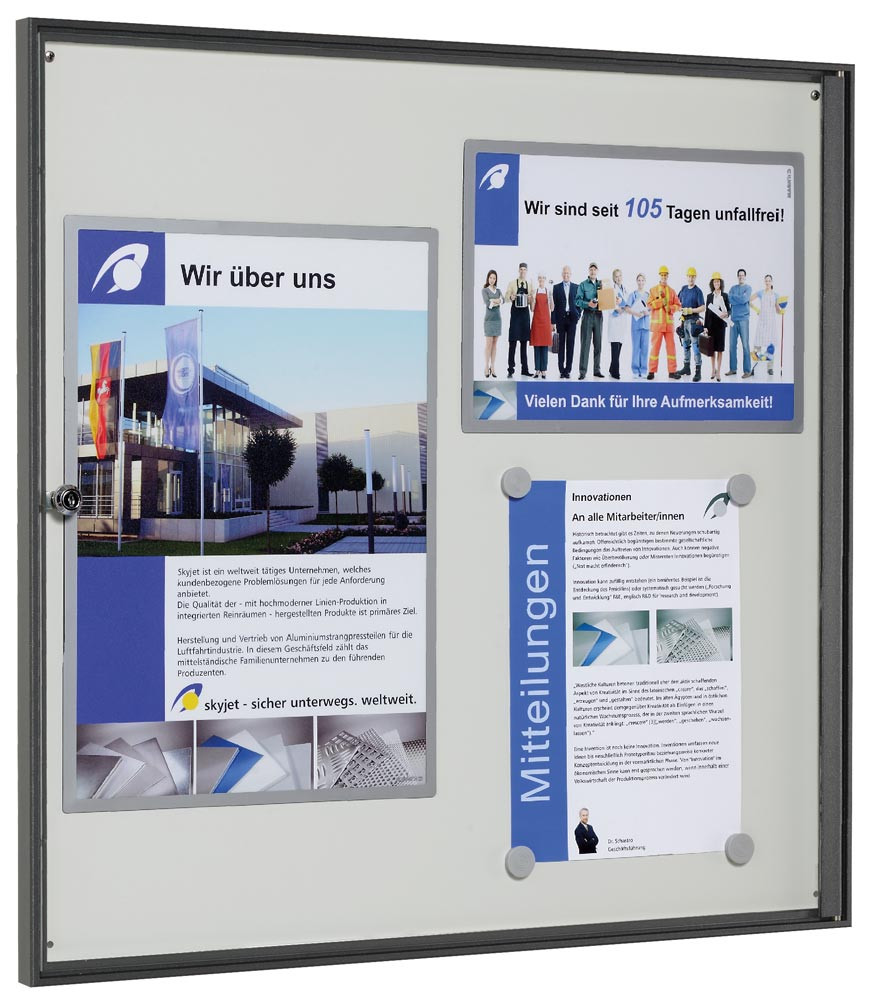 Schaukasten, BxTxH 725x27x700 mm, 6xDIN A4, Aluprofile anthrazit, ESG-Glas, Rückwand weiß, magneth.