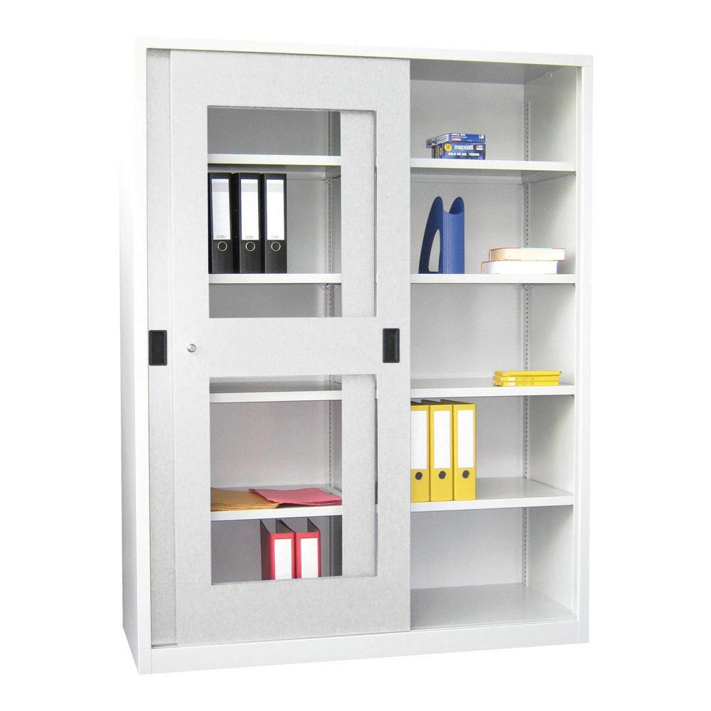 Schiebetürenschrank, Sichtfenstertüren, 4 verzinkte Böden, ohne Trennwand, BxTxH 1000x500x1950 mm, RAL 5010 EP525658