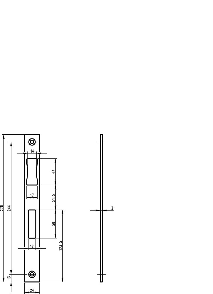 Schließblech B 9000 Edelstahl Breite 24 x Länge 270 mm käntig DINlinks / rechts flach
