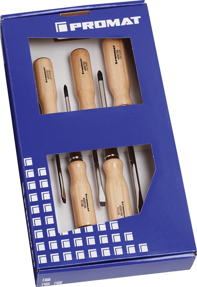 Schraubendrehersatz 5-teilig Schlitz / PZD Holzgriff Rundklinge mit 6-Kant-Ansatz