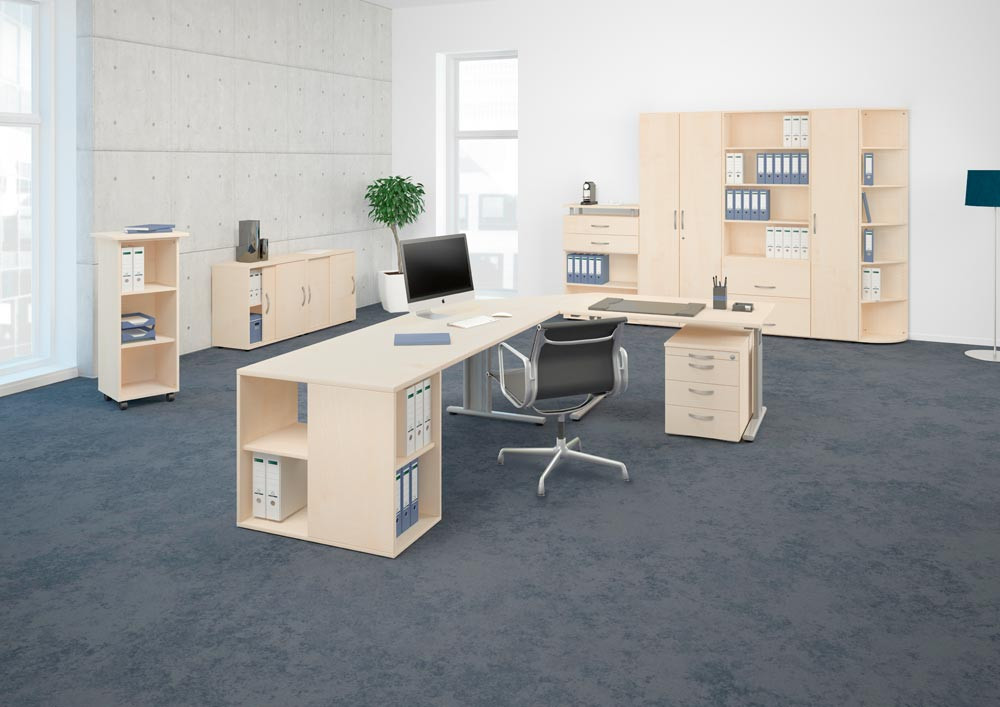 Schreibtisch, BxTxH 800x800x680-820 mm, höhenverstellbar, Platte ahorn, C-Fuß-Gestell silber EP527924