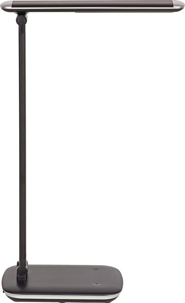 Aluminium · mit Standfuß · mit integriertem 5V, max. 500 mA USB Typ A Anschluss zum Aufladen von z. B. Smartphones · 5-Stufen-Dimmer mit Touchfeld-Bedienung am Leuchtenfuß · Leuchtenkopf 260 x 50 mm – Armlänge 365 mm – Höhe 425 mm ∙ Betriebsspannung 220 - 240 V · Lichtfarbe 4.000 Kelvin - neutralweiß · Lebensdauer 20.000 Stunden · Lichtstrom 716 Lumen · gewichteter Energieverbrauch 6 kWh/1000 h · Energieeffizienzklasse E (Spektrum A bis G)