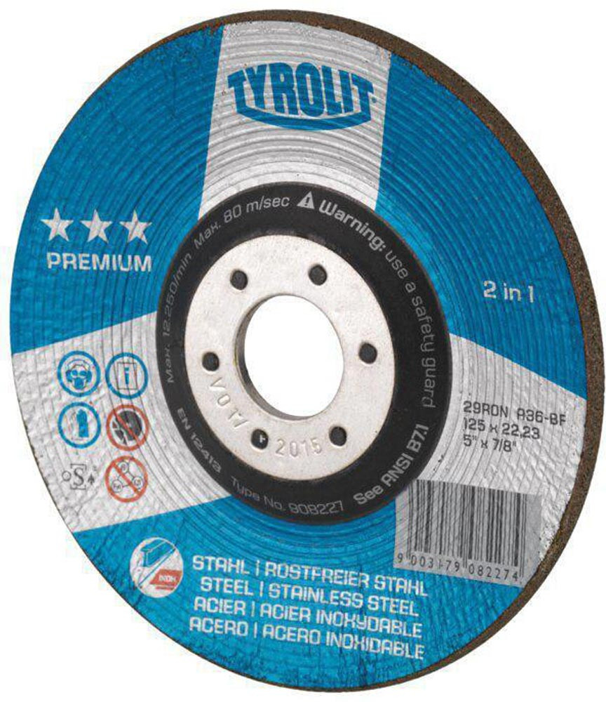 Schruppscheibe RONDELLER® D125xSmm Körnung 36 gekröpft INOX/Stahl Bohrung 22,23 mm E6413438