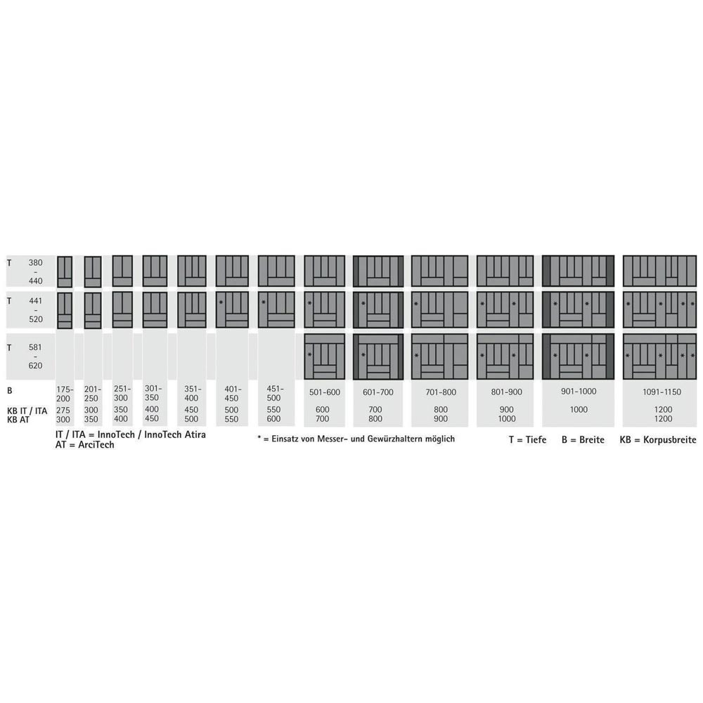 | Einsatzbereich | Innenorganisation für Schubkästen und Innenschubkästen |