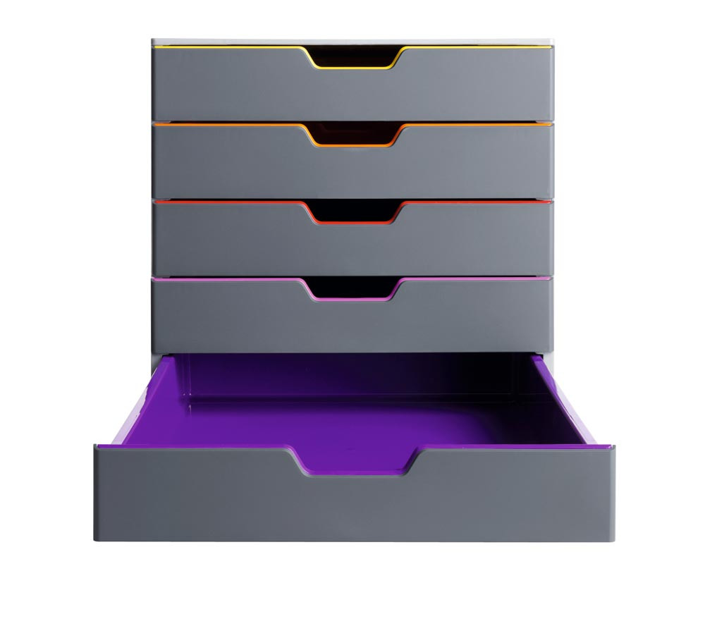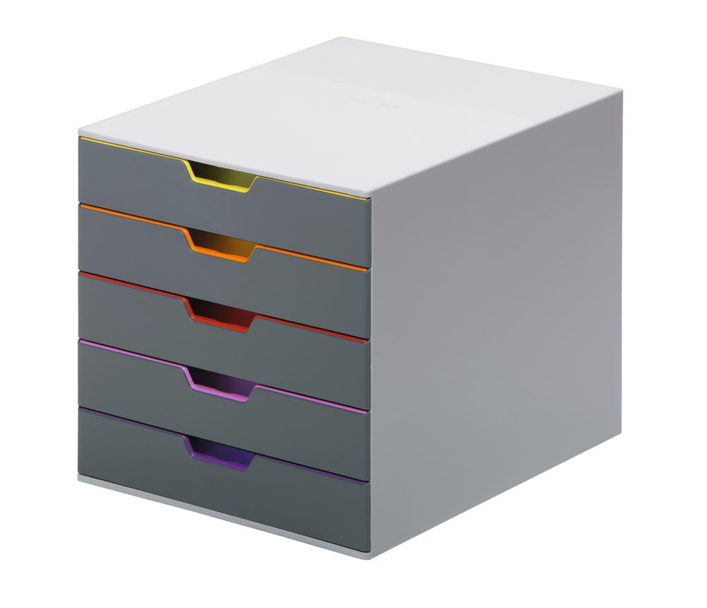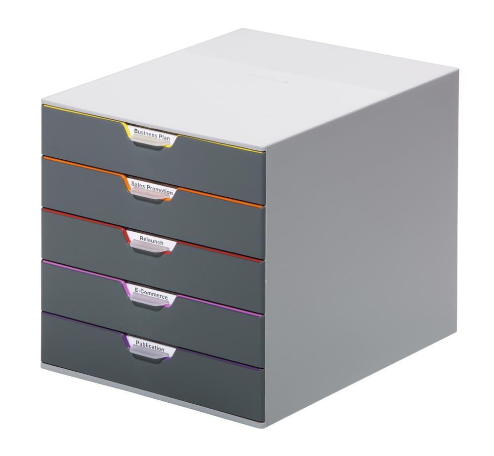 Schubladenbox, BxTxH 280x356x292 mm, 5 farbige Schubladen, aus ABS, inkl. Beschriftungsfenster EP517895