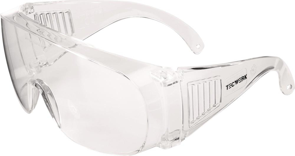 EN 166 · für Besucher · volltransparentes Polycarbonat · schlagbeständig · leicht · für Brillenträger geeignet