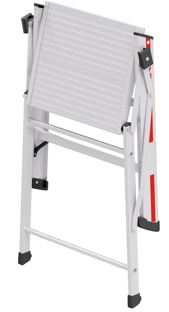 · Stufen-Klapptritte, einseitig begehbar · Hergestellt aus Aluminium · Große Plattform B x T 400 x 500 mm Standfläche · Hohe Verwindungsstabilität dank robustem D-Holm-Konzept · Ergonomischer Griff für einfache Bedienung · Extra große Leiterschuhe für einen sicheren Stand · Leicht zu reinigender, geschlossener Holm