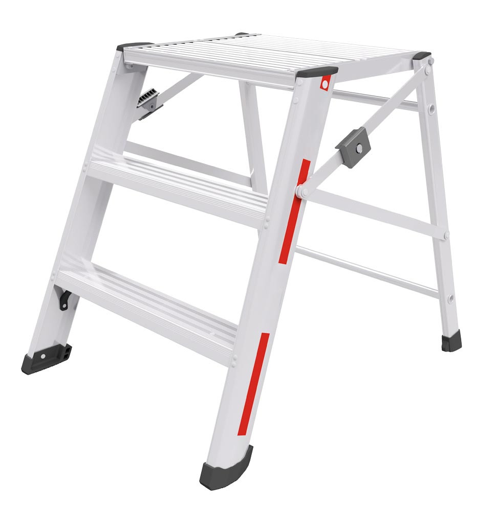 Service- und Montagetritt, einseitig begehbar, 3 Stufen, Standhöhe 0,69 m, 80 mm Stufentiefe, Gewicht 6,4 kg