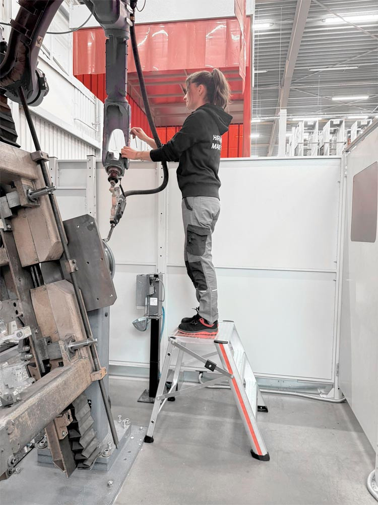 Service- und Montagetritt aus Aluminium, 2x3 Stufen, Standhöhe 690 mm, 80 mm tiefe Stufen, beidseitig E6501056