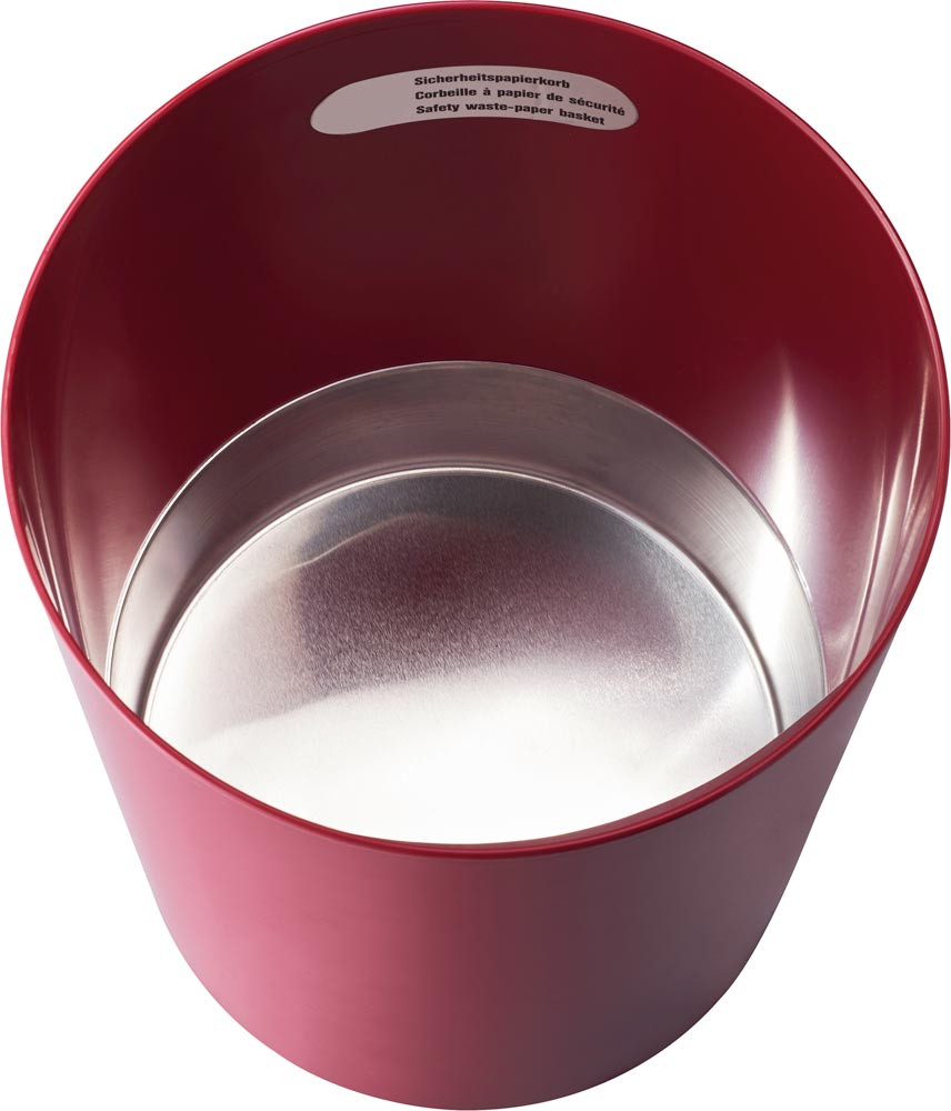 Sicherheits-Papierkorb, Kunststoff schwer entflammbar, Metallboden, Volumen 13 l, Durchm.xH 250x300 mm, bordeaux, VE 5 Stück
