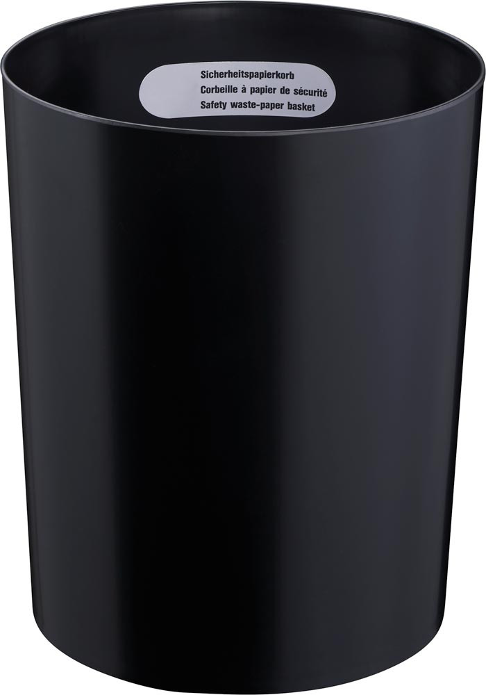 · Aus schwer entflammbarem Sicherheitskunststoff · Er verhindert, dass ein im Papierkorb entstandenes Feuer auf die Umgebung übergreift - die höchste Stufe der Sicherheit aus Kunststoff · TÜV-geprüft